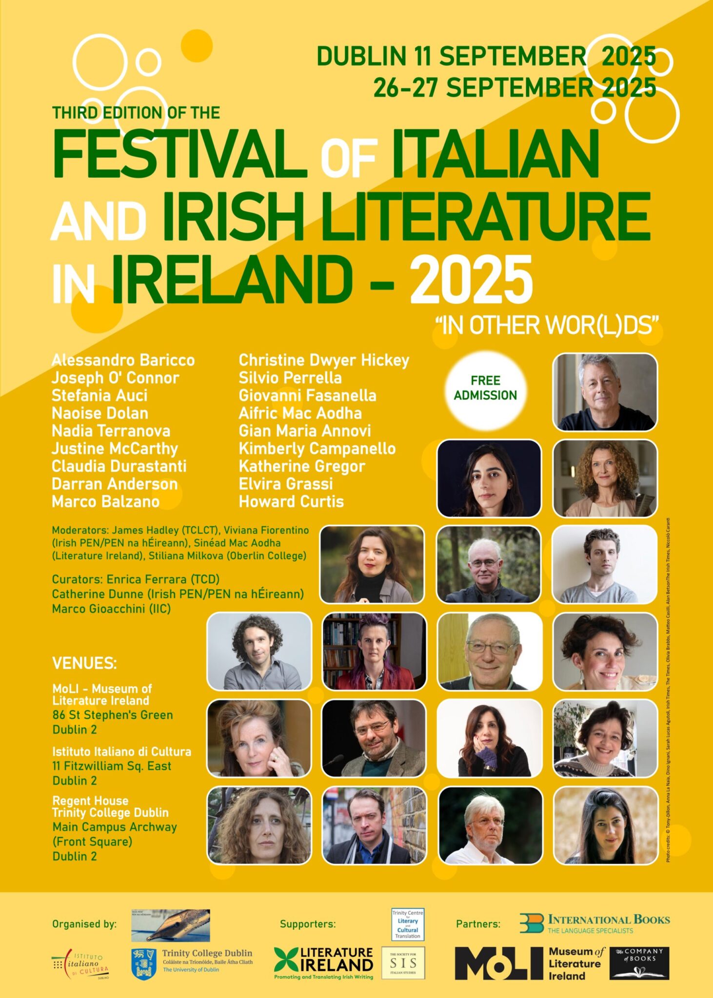 FIILI is an initiative of the Italian Institute of Culture in Dublin, Irish PEN/PEN na hÉireann and Trinity College Dublin (part-funded from the Faculty of Arts, Humanities and Social Sciences Events Fund), supported by Literature Ireland, the Society for Italian Studies and the Trinity Centre for Literary and Cultural Translation and in partnership with MoLI – Museum of Literature Ireland.